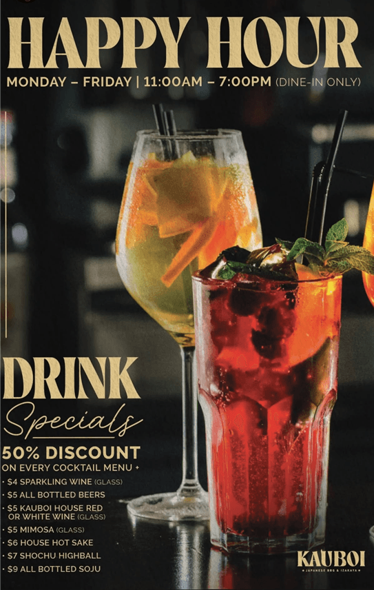 50% Discount on Every Cocktail Menu